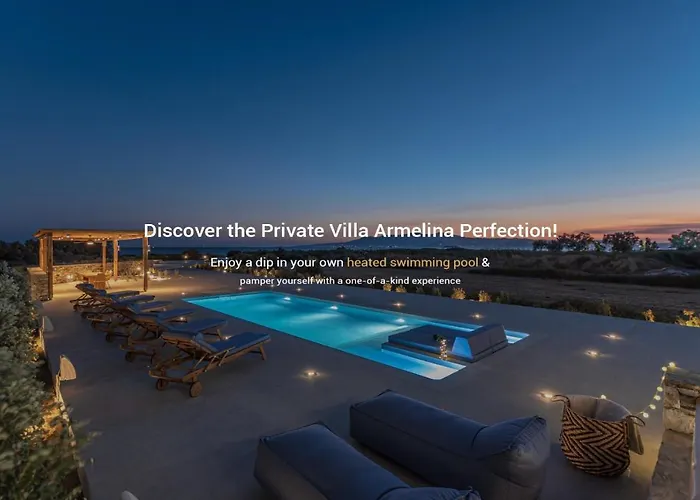 Villa Armelina obejmuje wyposażony aneks kuchenny wyposażoną w ekspres do kawy/herbaty, lodówkę i piekarnik do przygotowywania posiłków. Goście mogą zjeść posiłek w restauracji Delphini Restaurant, w bliskiej odległości od willi. Goście mogą z łatwością dotrzeć na lotnisko Naxos Island National, położone 5 km od obiektu w Pláce. W obiekcie w Pláce dostępne są rowery do wynajęcia. Oferuje szeroki wachlarz udogodnień dla gości, w tym lekcje jogi i zabiegi SPA. Spa obejmuje jacuzzi. Lokalne atrakcje obejmują jazdę na rowerze.
